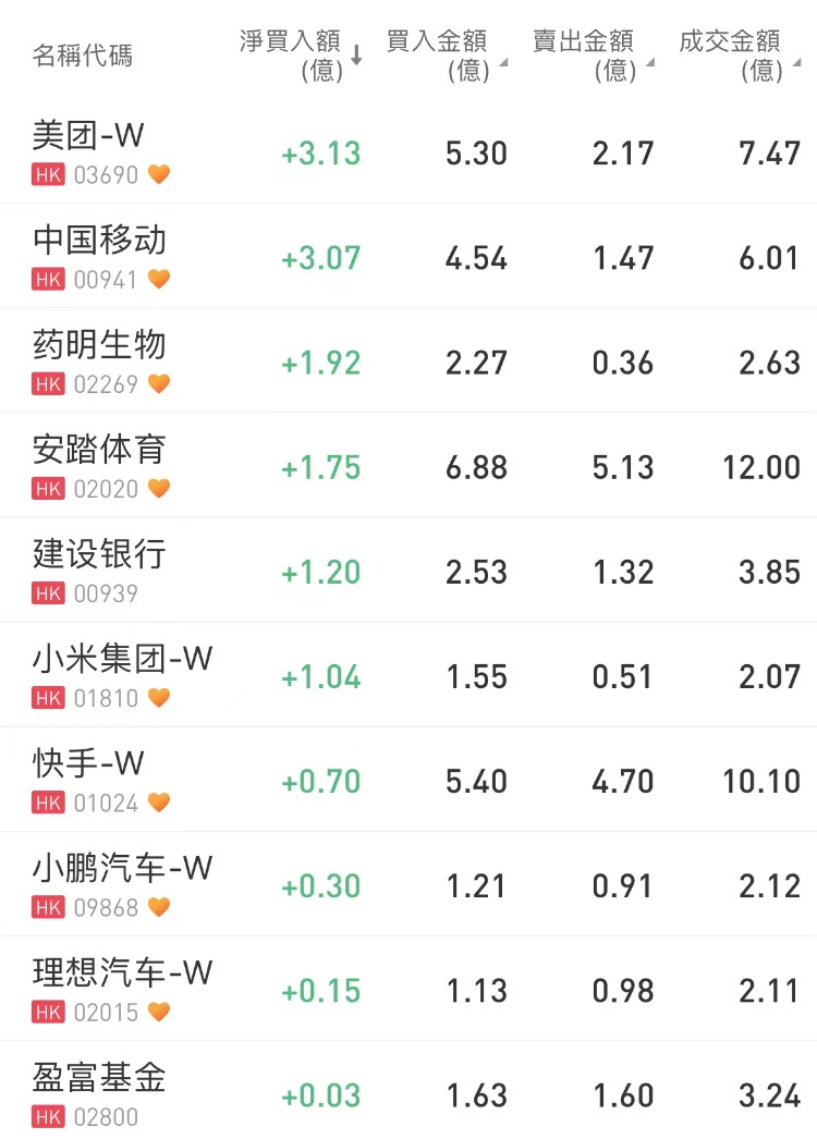南向资金加仓美团、中国移动,沽出南方恒生科技