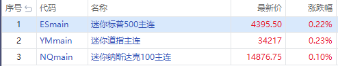 华盛资讯8月25日消息,三大股指期货盘前小幅走高,截至发稿,纳指期货 $NQmain 现涨0.1%,标普500指数期货 $ESmain 涨0.22%,道指期货 $YMmain 涨0.23%。