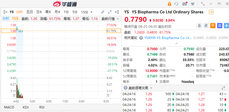 YS Biopharma $YS 涨超61%,公司宣布创始人兼董事长购买429188股股票,董事兼首席执行官购买46300股股票。