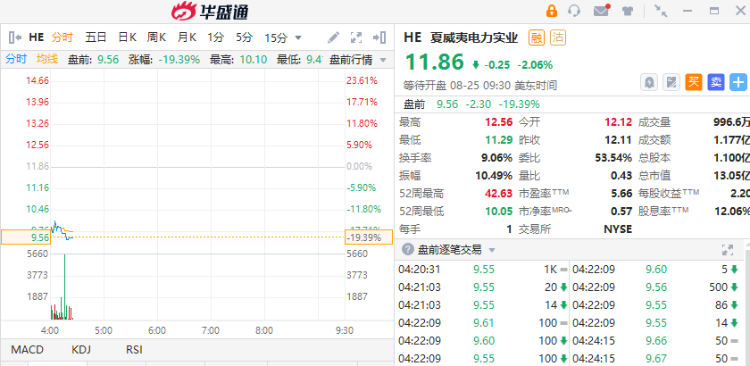夏威夷电力 $HE 跌超19%,美国夏威夷州毛伊县政府当地时间8月24日起诉夏威夷电力公司,指责该公司在飓风来临、气候干燥的情况下,因疏忽未能切断电源,从而导致了毁灭性的森林火灾。