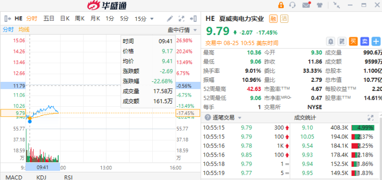 夏威夷电力 $HE 跌超17%,美国夏威夷州毛伊县政府当地时间8月24日起诉夏威夷电力公司,指责该公司在飓风来临、气候干燥的情况下,因疏忽未能切断电源,从而导致了毁灭性的森林火灾。