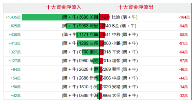 好仓(认购证及牛证)方面,上周五美团、阿里、兖矿能源等相关好仓单日分别获得1435万港元、625万港元、430万港元资金净流入;比亚迪获得164万港元资金净流出。
