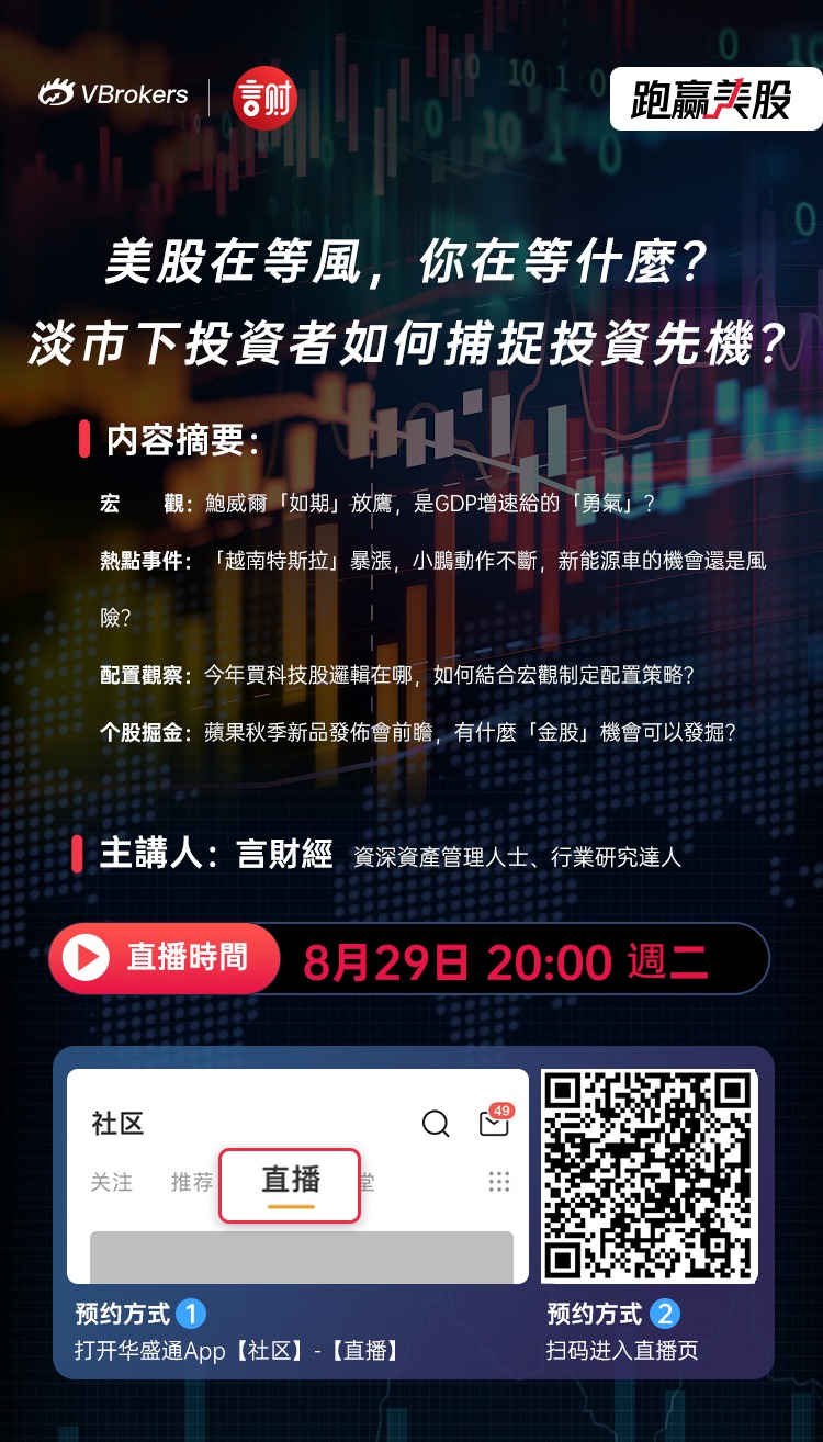 点击预约直播>>美股在等风,你在等什么?淡市下投资者如何捕捉投资先机?(今晚播出时间为八点,敬请留意!)