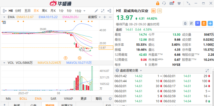 从金融市场上的走势看,随着夏威夷电力公司周一试图将火灾责任“甩锅”当地消防部门,其股价当天也大幅飙升了逾44%,收于13.97美元。