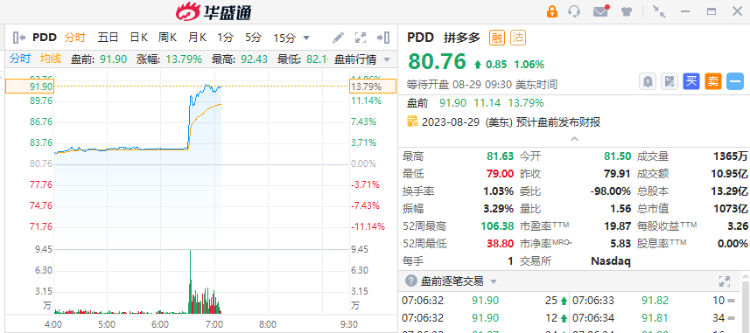 盘前暴涨14%!拼多多Q2营收、净利全面超预期!