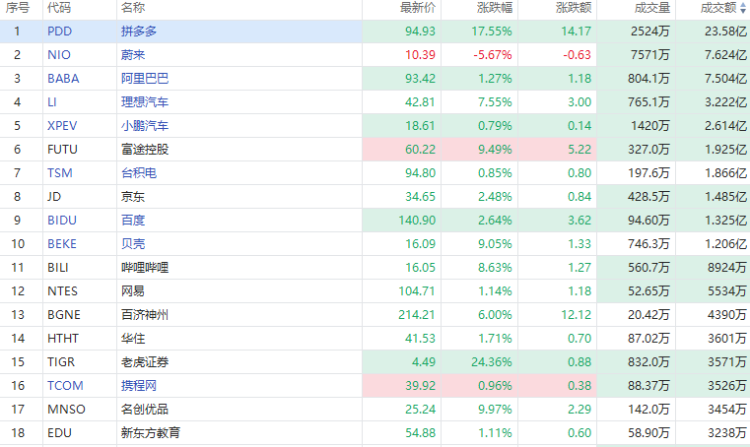 截至发稿,拼多多绩后暴涨17%,名创优品涨近10%,哔哩哔哩涨超8%,理想汽车涨超7%;蔚来绩后挫5%,公司Q2亏损超60亿元。