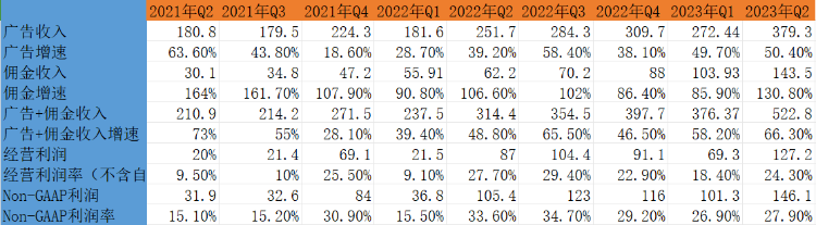 佣金收入达到143.5亿,同比增速130.8%,远超广告业务增速。佣金收入包括多多买菜净收入、TEMU净收入、百亿补贴部分类目佣金、其他商品日常销售的支付手续费。
