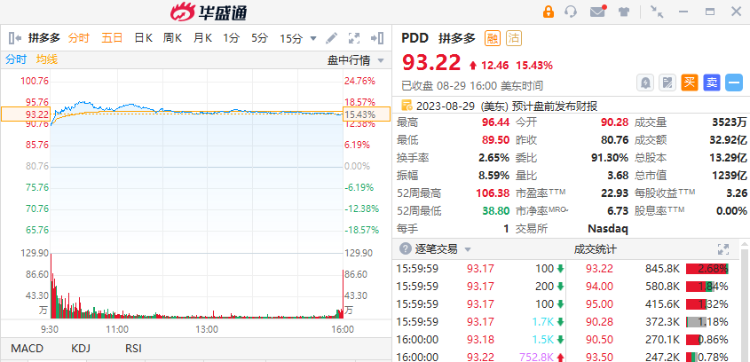 8月29日,拼多多发布了2023年第二季度财报,表现再次远超市场预期,截至美股收盘,拼多多大涨超15%。