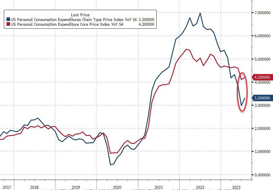 周四公布的美联储最青睐的通胀指标——7月核心PCE物价指数连续第二个月环比增长0.2%,创两年多来最低连月增速,同比增长较6月略为加快0.1个百分点至4.2%;但通胀调整后的个人消费支出环比超预期增长0.6%,创半年最高增速。