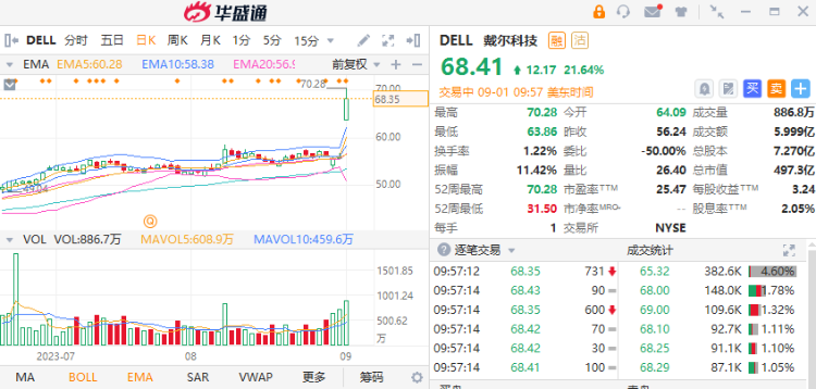 戴尔科技盘前大涨超10% 2024财年Q2业绩超预期 上调全年营收指引