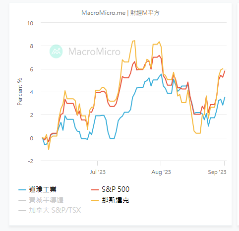美股三大指数在终结8月份后,齐见向下。道指累跌2.36%。标普跟跌1.77%,为自年初2月份至今,首个月计向下滑。而纳指月内累跌2.17%,为年内最大月计跌幅。