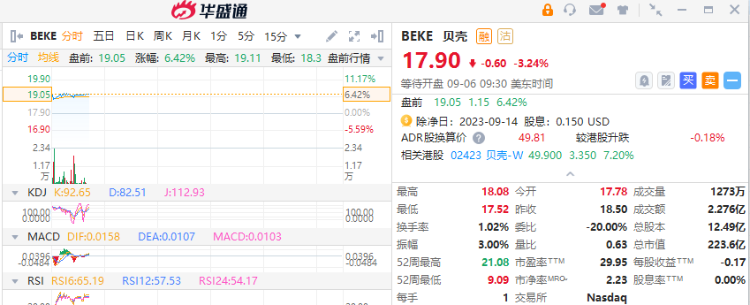 贝壳 $BEKE 盘前涨6.42%,报19.05美元。光大证券发研报指,“认房不认贷”政策的落地,预计在一线城市中,中短期效果会较为明显,一方面,置换需求抬头将带动二手房挂牌量提升,同步拉升二手房成交量;另一方面,市场上中高端需求量也会进一步提升,置换需求入市会更为积极。