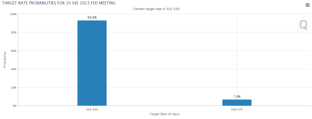 根据芝商所的美联储观察工具,交易员预计美联储很有可能不会在9月上加息。然而,他们认为10月加息的可能性为43%。