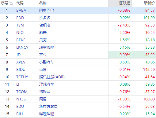 华盛资讯9月6日消息,热门中概股走势分化,瑞幸咖啡 $LKNCY 涨超5%,贝壳涨超1%,拼多多、小鹏汽车小幅走高;台积电、蔚来跌超2%,网易跌超1%,京东跌近1%。