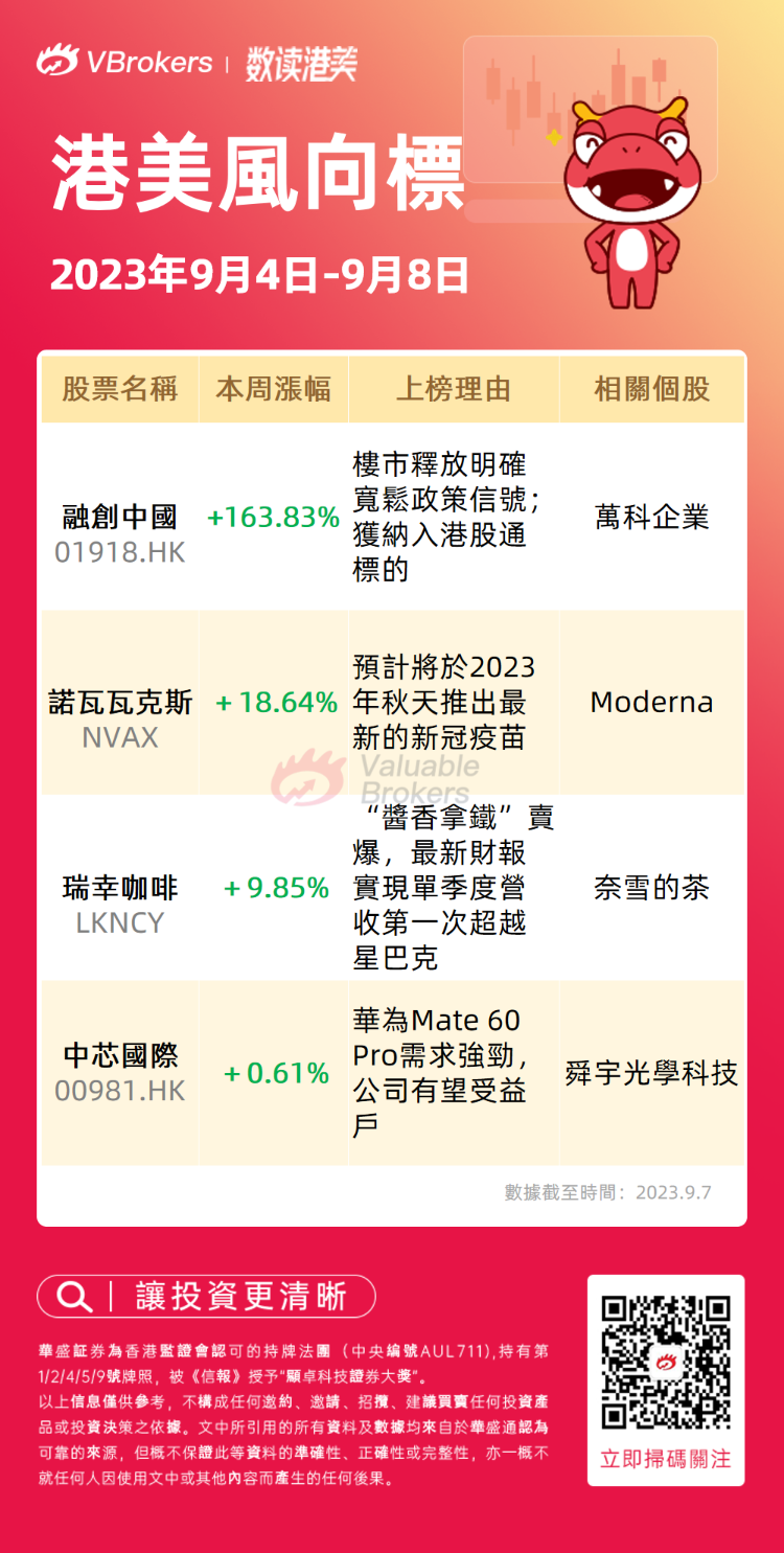 港美风向标 | 脱离仙股!融创中国周内猛涨164%;“酱香拿铁”大火,瑞幸赢麻了?