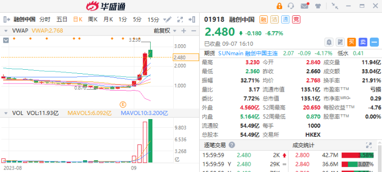 - 在9月5日港股通标的调整中,融创中国是唯一一家获纳入的房地产企业。对融创中国而言,被再度纳入港股通将有望获得南向资金的流动性支持。受多重利好刺激,融创中国股价自9月4日至今,累涨近164%,脱离“仙股”。