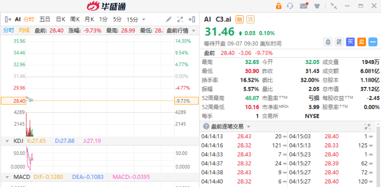 企业AI软件供应商 C3.ai $AI 盘前跌近10%,2024财年第一季度营收超预期增长11%,但预计本财年亏损扩大、盈利时间推迟。分析指出,C3.ai疲软的指引以及实现盈利所需时间更久令投资者担心,该司难以利用AI热潮变现。