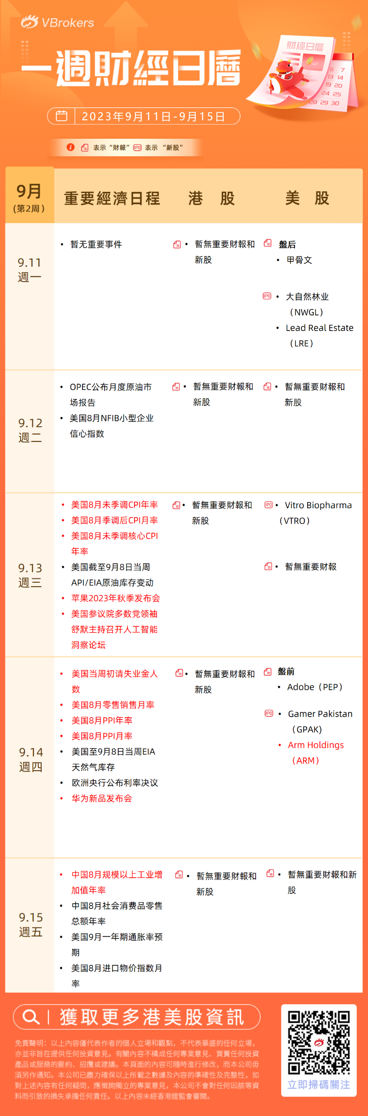 美股方面,预计下周将有5只新股上市,包括大自然林业 、Lead Real Estate Co 、Vitro Biopharma $VTRO 、Gamer Pakistan $GPAK 、Arm Holdings $ARM 等。