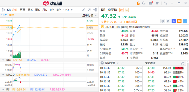 克罗格 $KR 一度上涨将近6%。该公司表示,美国低收入消费者面临(物价)上行压力。