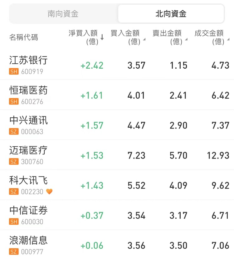 北上资金买入江苏银行,立讯精密净卖出额居首