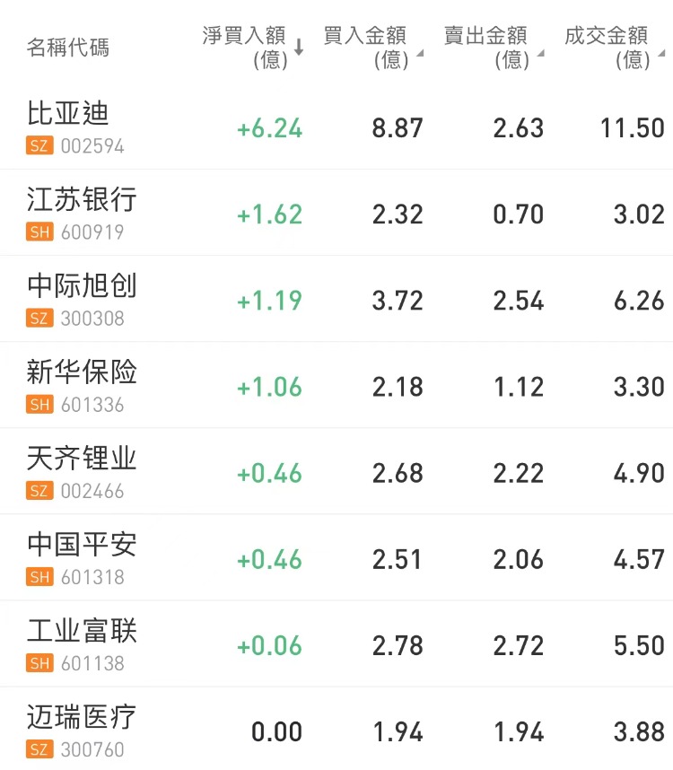 北向资金增持比亚迪,贵州茅台遭净卖出5.12亿元
