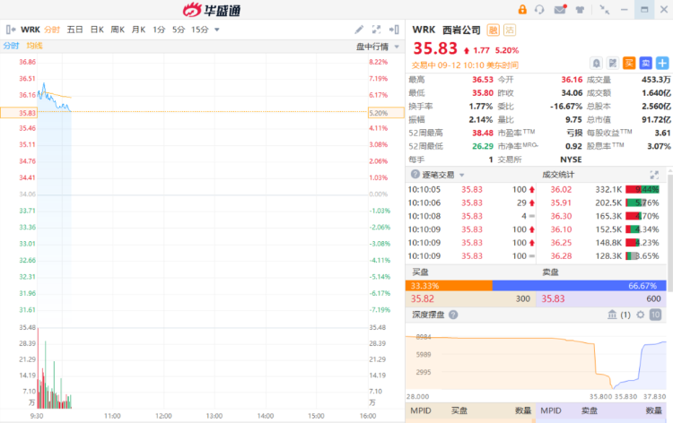 纸业和包装巨头WestRock $WRK 涨5.2%,报35.83美元。消息面上,公司同意在与总部位于爱尔兰都柏林的瓦楞纸包装公司Smurfit Kappa进行合并;前者占合并后公司股份的49.6%,后者占50.4%。合并后的公司将成为200亿美元的全球最大纸业巨头。