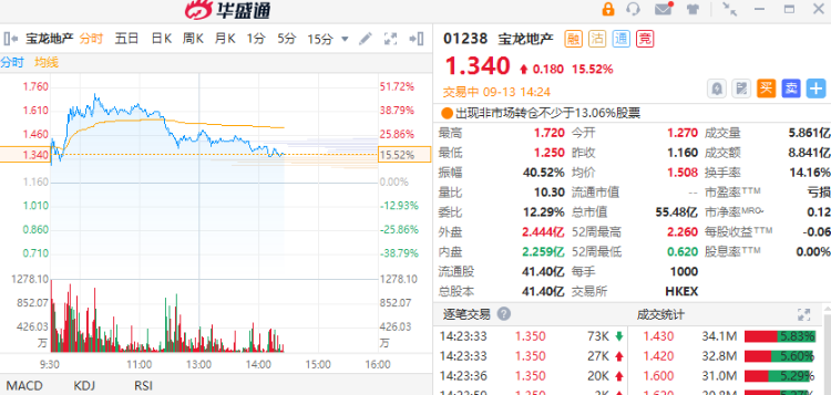 内地房地产港股近期表现抢眼。截至发稿,领涨的宝龙地产涨超15%,成交超8亿港元,5个交易日累计涨幅近50%。