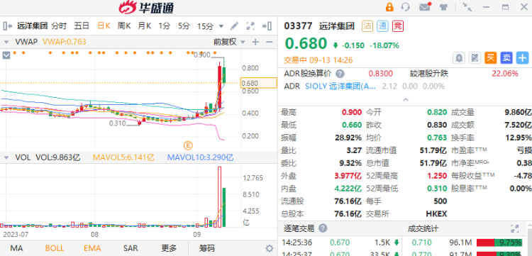 远洋集团(03377.HK)截至昨日之前4个交易日股价也已翻倍。