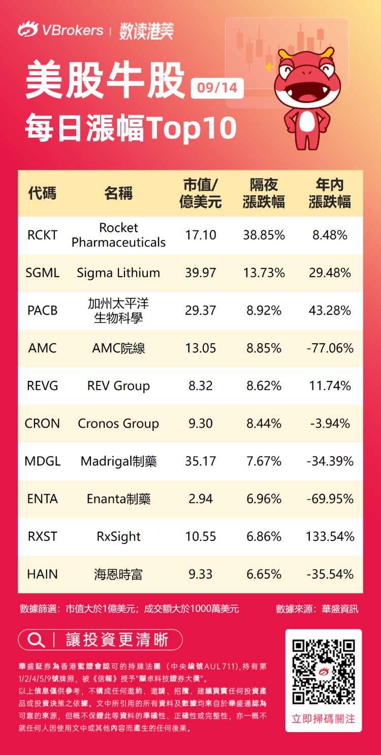 美股牛股 | 制药公司Rocket劲升逾38%!散户抱团股AMC院线获资金抄底