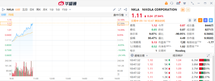 Nikola $NKLA 涨27.64%,报1.11美元。Nikola首席执行官说,现在正准备交付氢燃料电池卡车或FCEV(做燃料动力汽车),此前召回电动卡车不会影响FCEV的生产或交付,因为它们使用的是来自不同供应商的不同电池组。