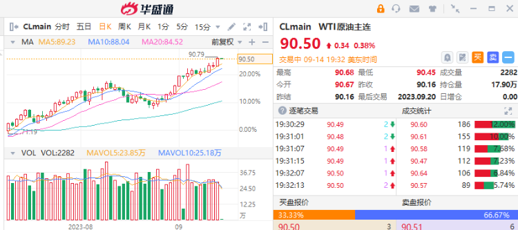 美国联邦基金期货交易员表示,美联储在9月、11月或12月不会进一步加息的可能性增加。此前一天,美国公布了8月CPI数据。CME“美联储观察”的数据显示,在考虑到美联储9月将利率维持不变的可能性为97%之后,交易员现在认为,美联储11月不采取行动的可能性为63.7%,12月不采取行动的可能性为59.9%。尽管今日公布的8月PPI和零售销售数据好于预期,交易员对美联储在11和12月按兵不动的押注仍高于周三的57.4%和53.8%。