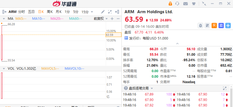 今年最大IPO来袭:Arm上市首日大涨近25%,市值超650亿美元
