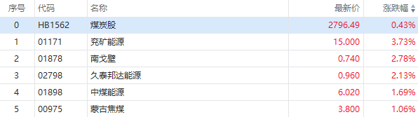 9月18日消息,港股煤炭股开盘走高,截至发稿,兖矿能源涨超3%,南戈壁、久泰邦达能源涨超2%;中煤能源、蒙古焦煤涨超1%。