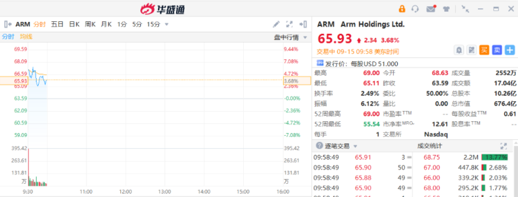 次新股Arm Holdings $ARM 涨超3%。该股周四上市首日大涨近25%,一些人认为这主要归功于散户投资者的抢购。