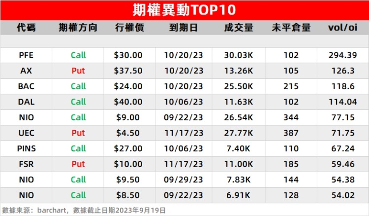2、图片社交APP Pinterest $PINS 隔夜收涨超3%。期权成交总量23.65万张,较过去30日平均放大4.56倍,行权价在27美元、到期日在10月6日的看涨期权获得市场抢筹。消息面上,该公司周二在投资者日推出了新的广告工具。