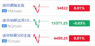 周三美股盘前,三大股指期货涨跌互现,截至发稿,纳指期货 $NQmain 现跌0.03%,标普500指数期货 $ESmain 涨0.01%,道指期货 $YMmain 涨0.01%。