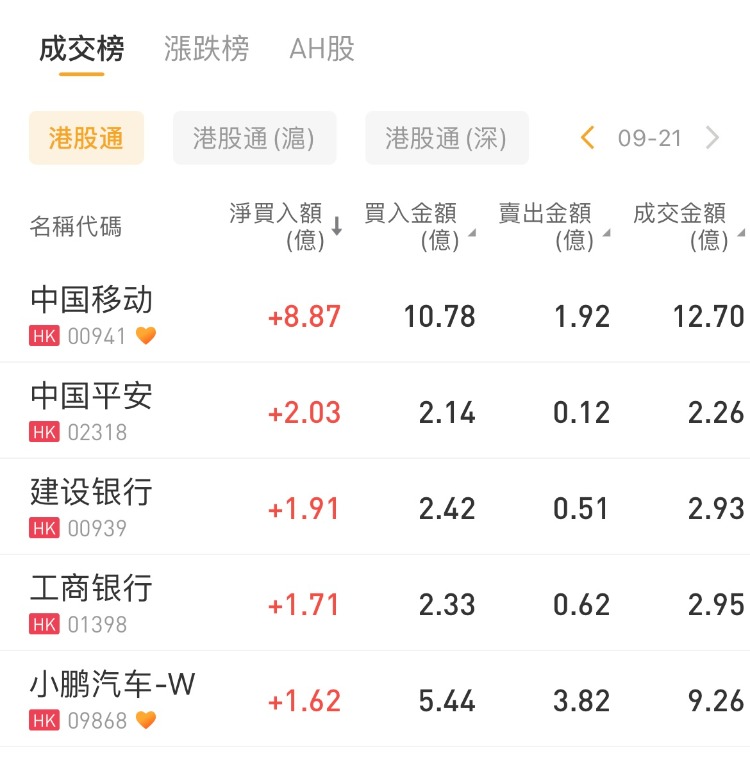 华盛资讯9月21日讯,南下资金今日净买入港股32.44亿港元,其中港股通(沪)净买入22.25亿港元,港股通(深)净买入10.19亿港元。