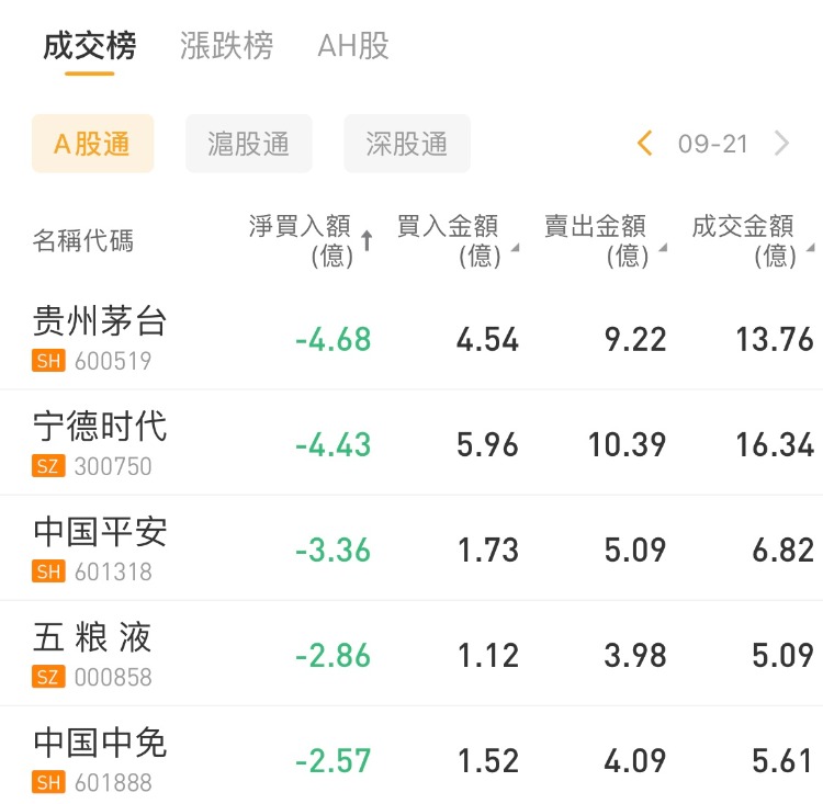 北向资金今日净卖出43.3亿元。贵州茅台、宁德时代、中国平安分别获净卖出4.68亿元、4.43亿元、3.36亿元。美的集团净买入额居首,金额为1.51亿元。