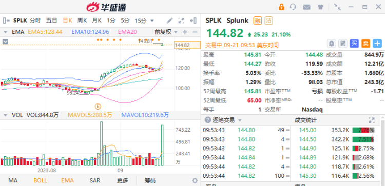 网络安全软件公司Splunk暴涨21%,获思科280亿美元现金收购;能源股逆势上涨,瓦莱罗能源涨超4%,马拉松原油涨超2%。