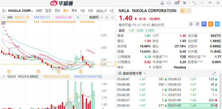 根据华尔街分析师在过去三个月为Nikola设定的目标价,最高预测为3.00美元,最低预测为2.00美元,该股的平均目标价为2.5美元,距离现价1.4美元的上涨空间约为78.6% 。