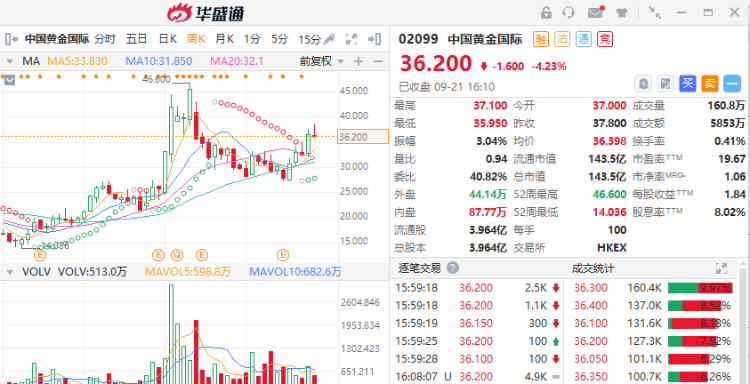 中国黄金国际主要从事黄金及其他有色金属矿产的收购、勘探、开发和生产。上半年,公司实现销售收入约3.26亿美元,黄金总产量约2.53吨,铜总产量约2万吨。