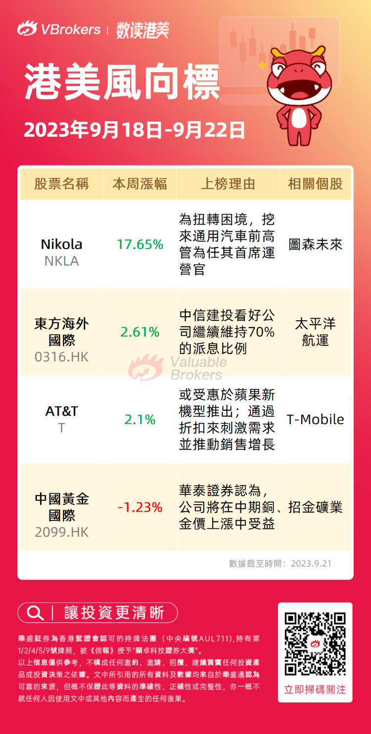 港美风向标丨股息回报率22%!机构唱多这只海运股;高层“换血”,NKLA周内涨超17%