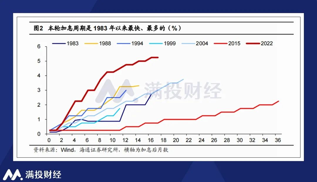 截至上一轮议息会议(2023年7月)结束,美联储在本轮加息周期中已经加息了500BP,从加息频率来看,这是美联储加息最为迅捷的一个周期。而之所以会有如此速度,其核心目的还是在于抑制2020年以来美国国内持续走高的通胀情况。