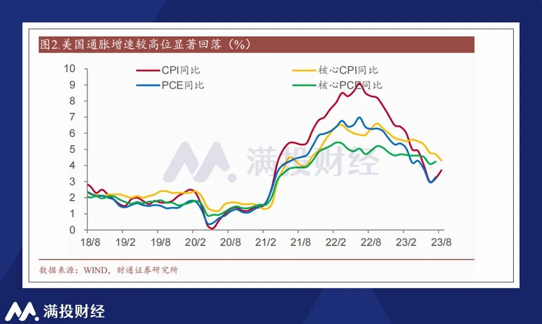 本次暂停加息是自美联储开启加息周期以来的第二次暂停加息举措,持续的高利率明显抑制了CPI的走势,因此美联储的暂缓本身是符合市场预期的。但结合7-8月的美国经济数据来看,美国通胀数据也展现出了顽强的特质,出现了“二次反弹”的迹象,这也是美联储暗示存在需要进一步加息的原因。