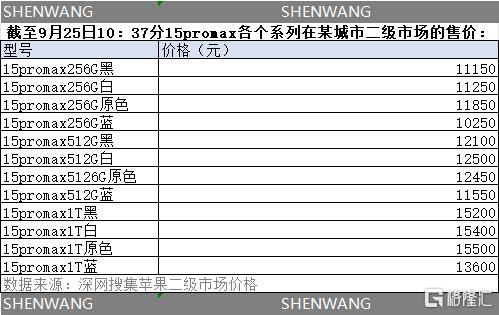 “现在能赚钱的只有iPhone15 Pro Max的高配版了,前天白色iPhone15 Pro Max 1T(9月23日)还能卖15900元,今天又降价100元。”北京地区的某黄牛对《深网》透露。