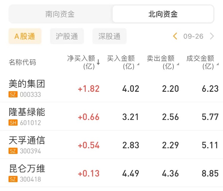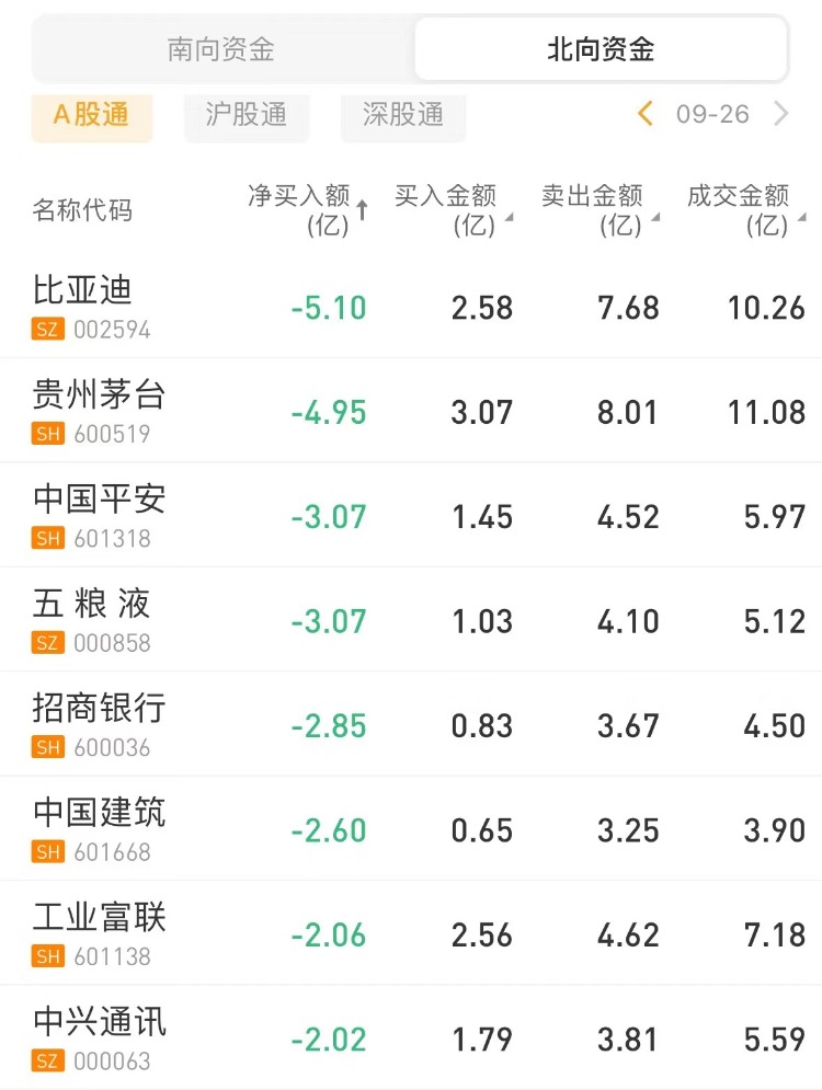 北向资金今日净卖出62.96亿元。比亚迪、贵州茅台、中国平安分别获净卖出5.10亿元、4.95亿元、3.07亿元。美的集团净买入额居首,金额为1.82亿元。