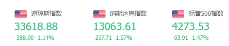 美股周二大幅收跌,道指蒙受3月份以来的最大单日跌幅。纳指跌幅为1.57%,报13063.61点;标普500指数跌幅为1.47%,报4273.53点。科技股全线走弱,亚马逊跌超4%,苹果收跌2.34%,特斯拉收跌1.16%。