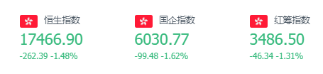 周二港股三大指数齐跌,恒生指数收跌1.48%,报17466.9点,恒生科技指数跌1.69%,国企指数跌1.62%。京东集团跌近3%,中国奥园复牌第二日跌近11%,欢喜传媒涨近14%。