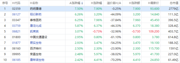 截至发稿,药明康德A股涨7.50%,H股涨近8%;泰格医药A股涨6.25%,H股现涨近8%;康龙化成A股涨5.87%,H股涨超6%。