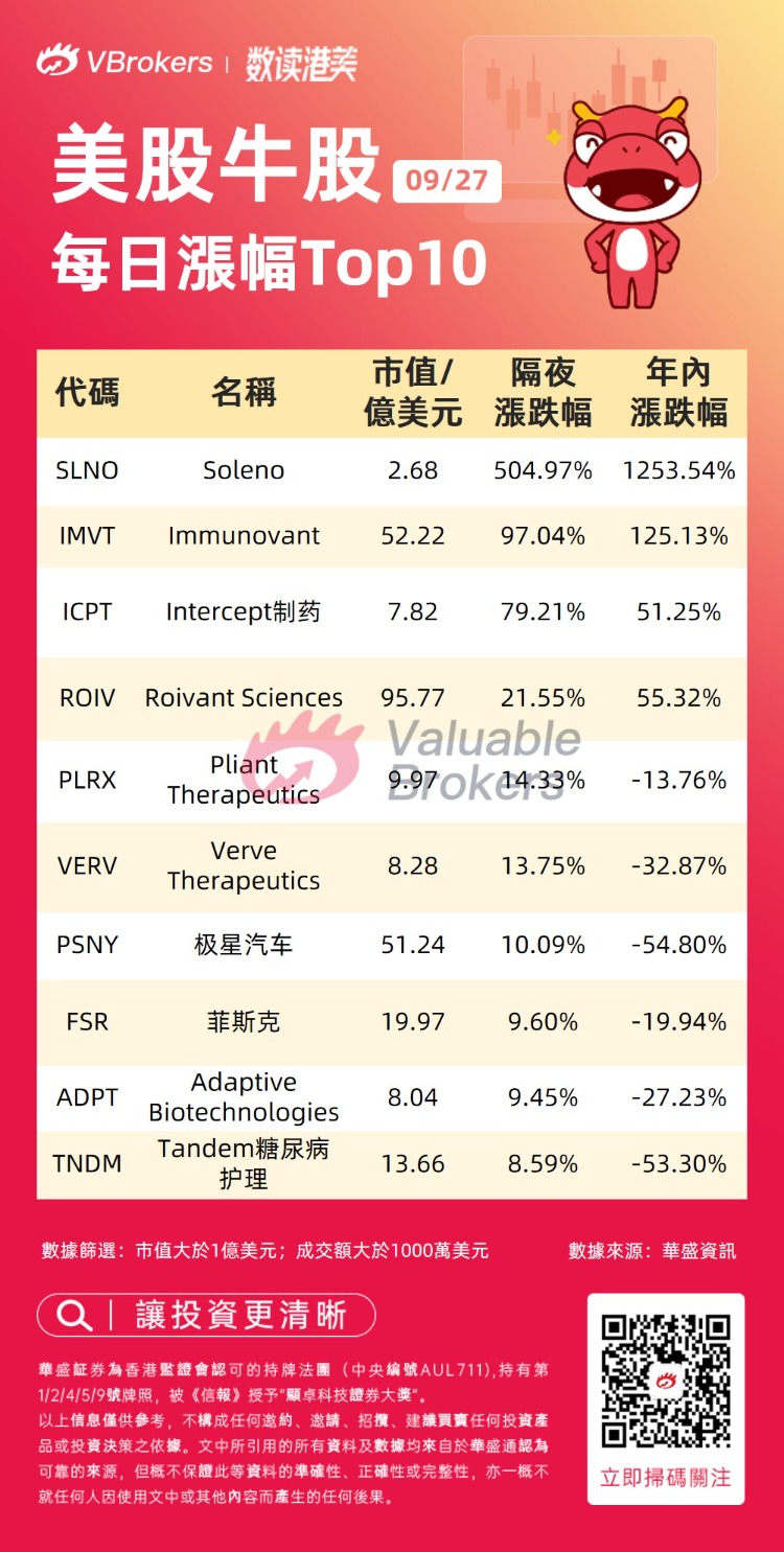 1、 生物医药公司:Soleno Therapeutics $SLNO 隔夜股价暴涨504.97%